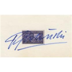 <B>Lana Turner Autograph.</B></I> A 3" x 5" card, with a 13-cent commemorative postage stamp affixed, signed by the <...
