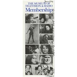 <B>Joyce Randolph Signed Brochure.</B></I> A Museum of Television and Radio membership brochure, inscribed, signed, and dated Nove...