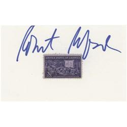 <B>Robert Redford Autograph.</B></I> A 5" x 3" card, with a commemorative three-cent postage stamp affixed, signed by th...