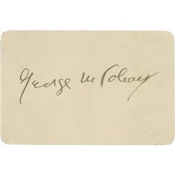 <B>George M. Cohan Autograph.</B></I> A 3.4" x 2.5" card signed by the legendary songwriter/composer/entertainer in blac...