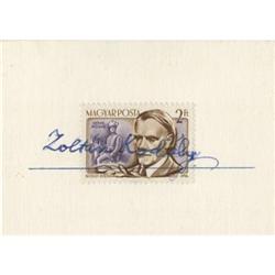 <B>Zoltán Kodály Autograph.</B></I> A 3.5" x 2.5" card, with a Hungarian postal stamp affixed, signed by the c...