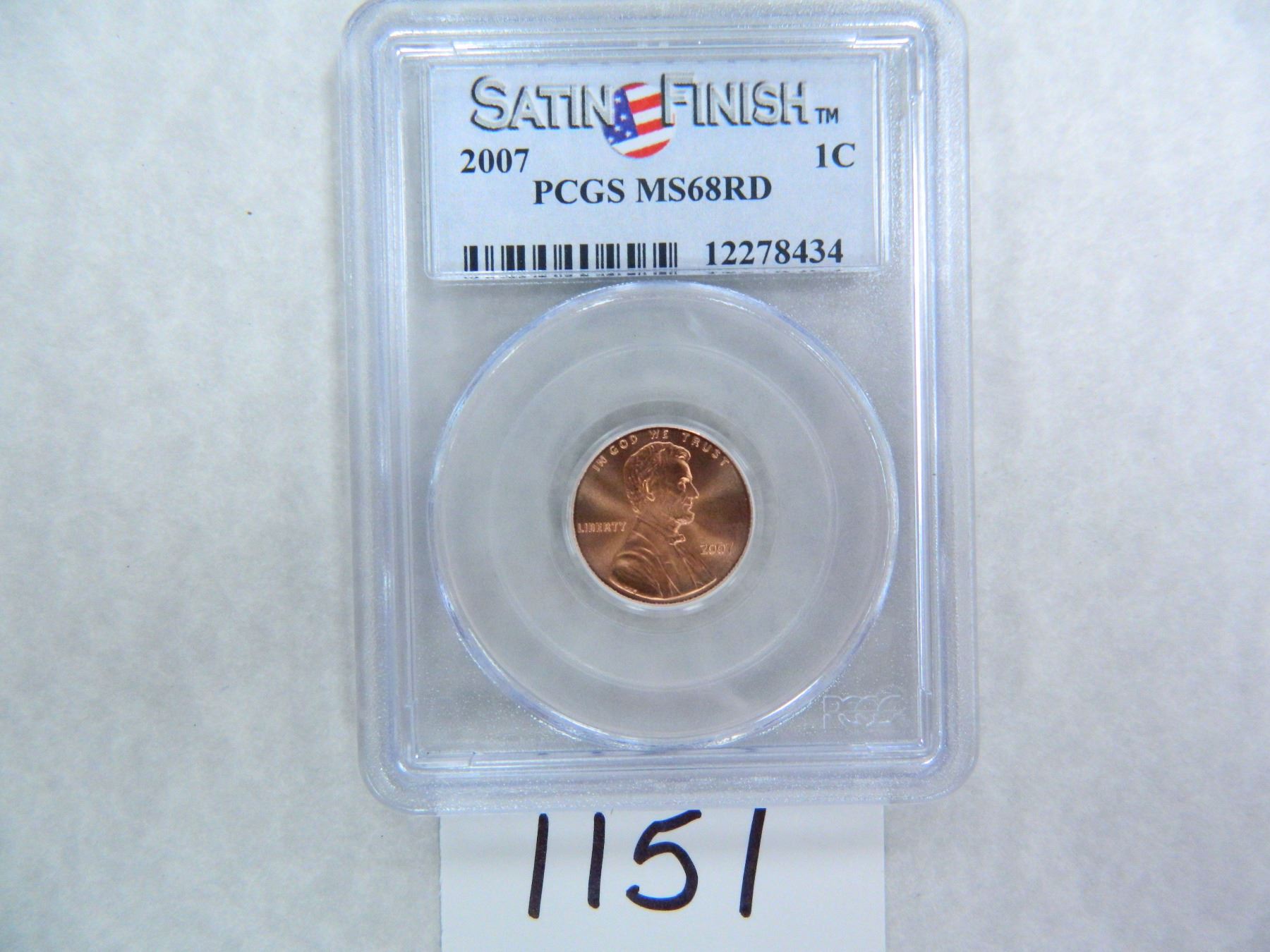 2007 One Cent PCGS Graded MS68 RD SATIN FINISH