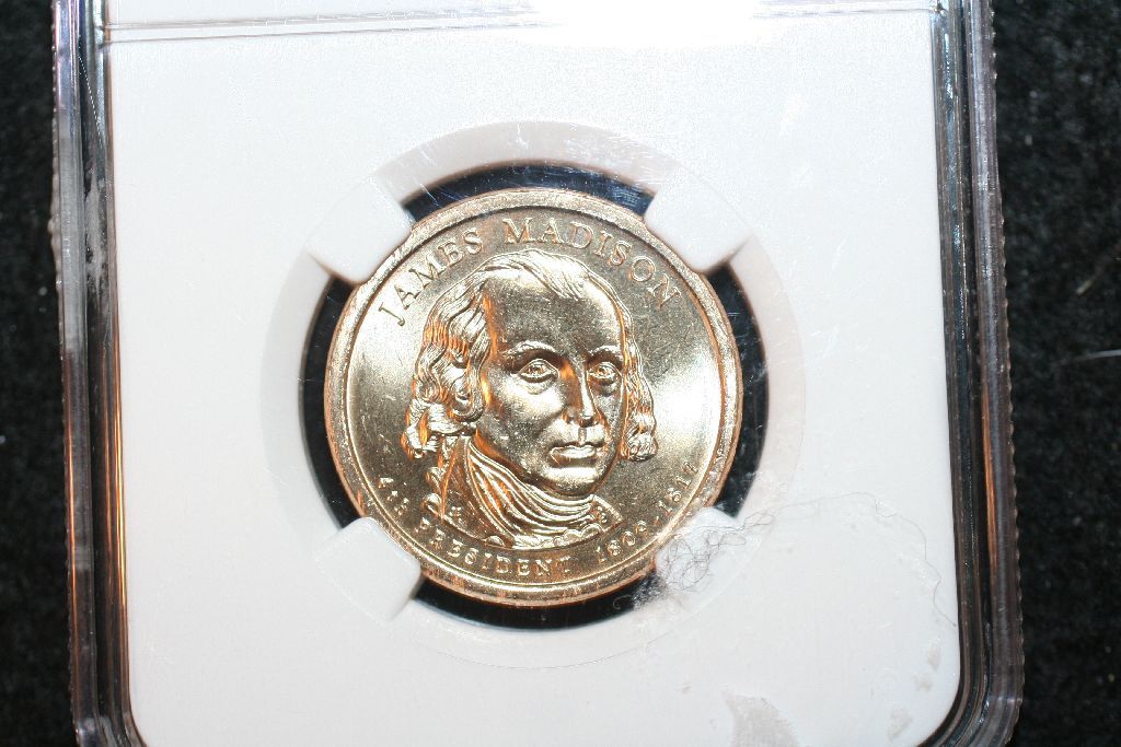 2007-P First Day Issue James Madison-4th President $1 Coin; NGC Graded MS65