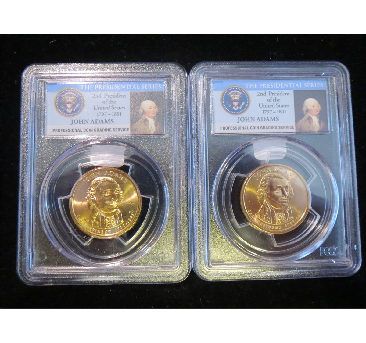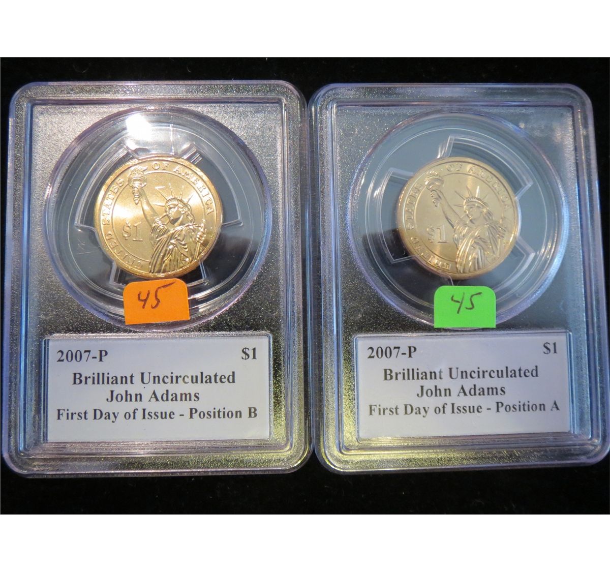 2007-P JOHN ADAMS PRESIDENTIAL DOLLARS - PCGS BU - 1ST DAY OF ISSUE POSITION A & B