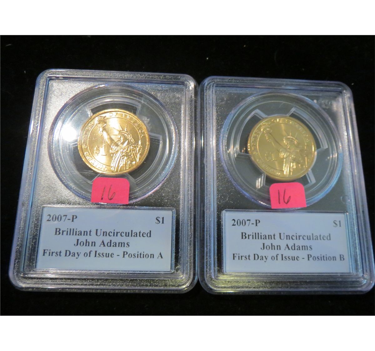 2007-P JOHN ADAMS PRESIDENTIAL DOLLARS - PCGS BU - 1ST DAY OF ISSUE POSITION A & B