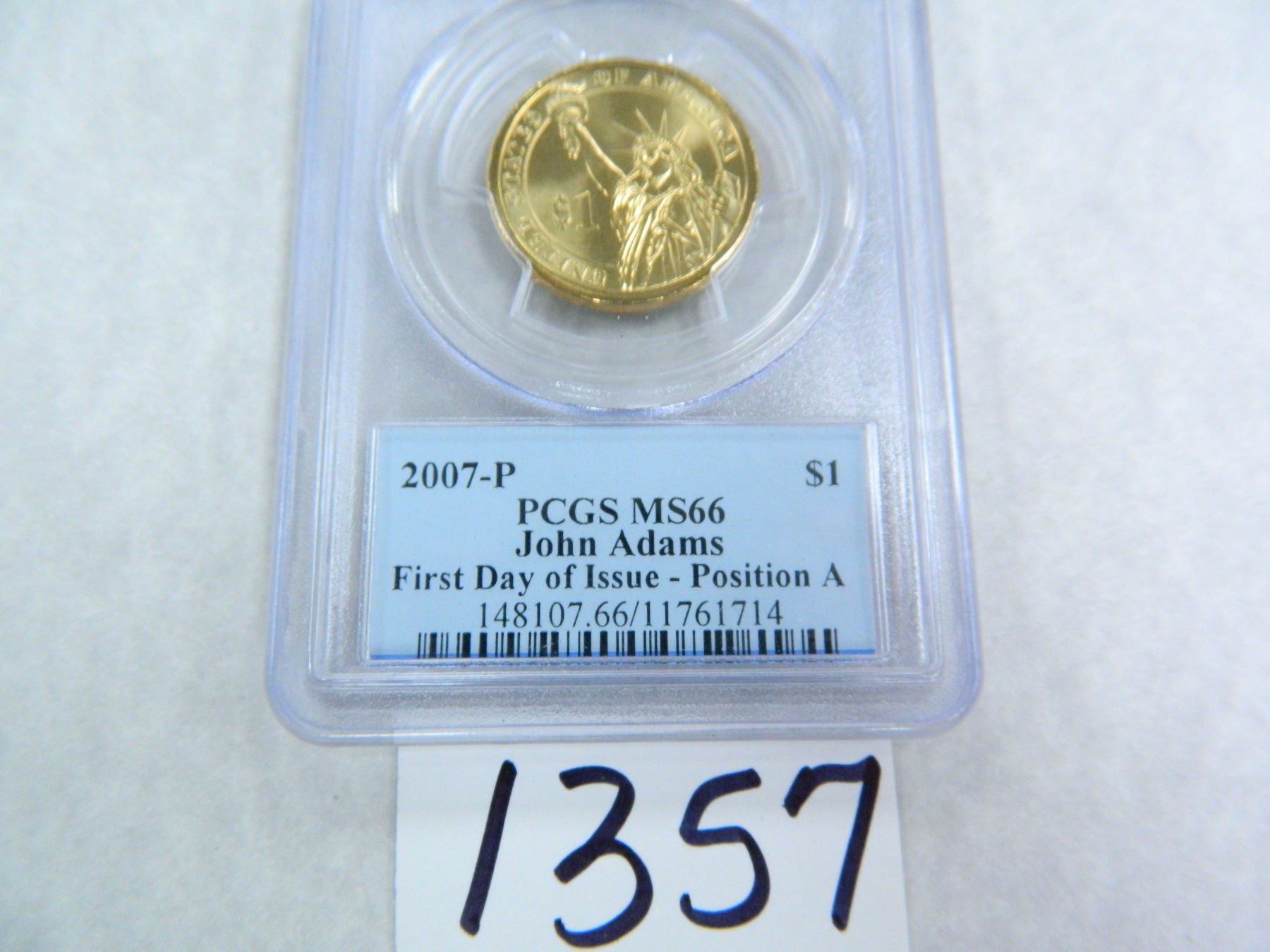 2007-P John Adams Dollar, FIRST DAY OF ISSUE, Position A, PCGS Graded MS66