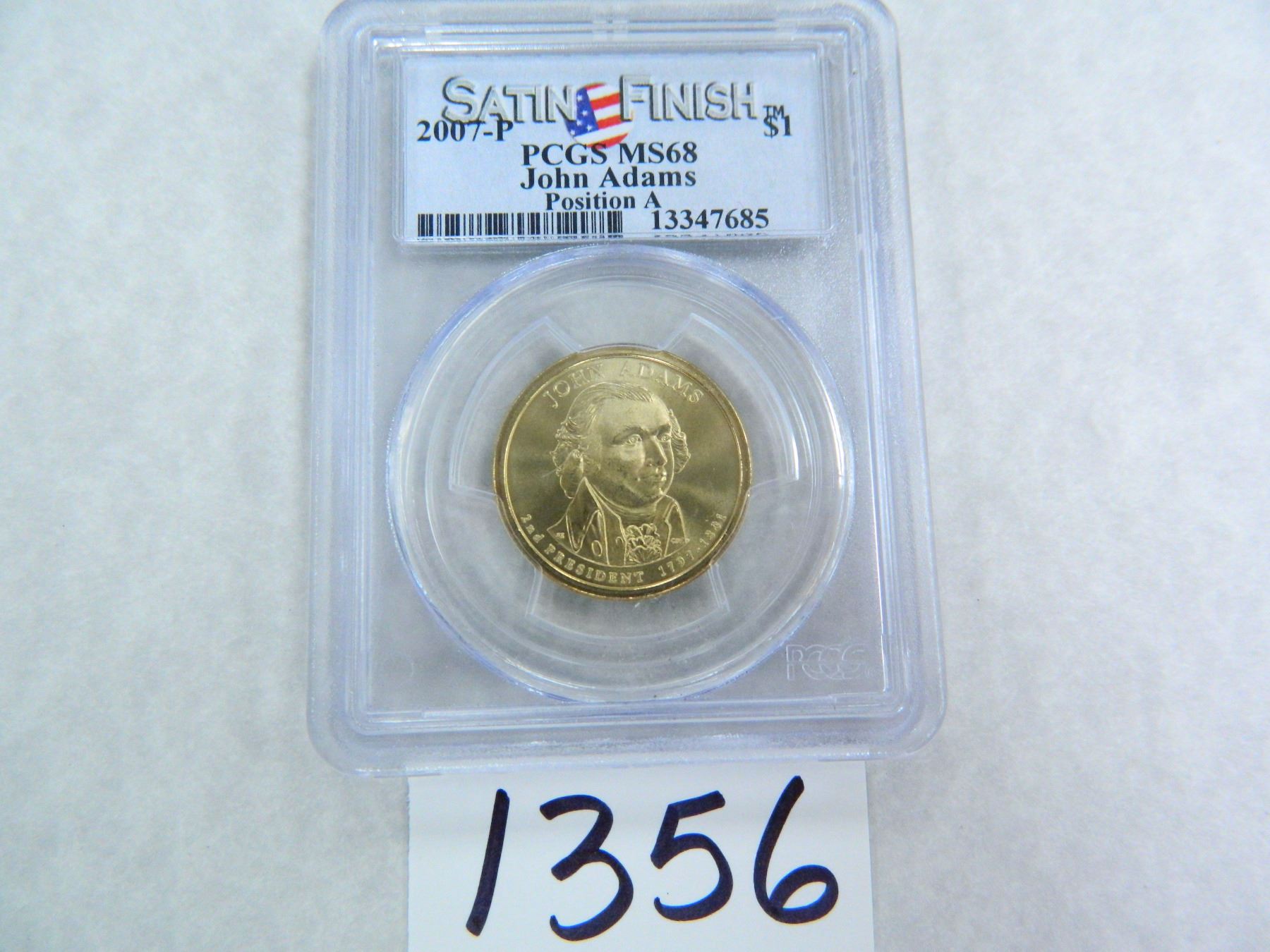 2007-P John Adams Dollar, SATIN FINISH, Position A, PCGS Graded MS68