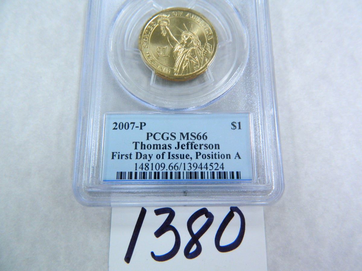 2007-P Thomas Jefferson Dollar First Day of Issue, Position A, PCGS Graded MS66