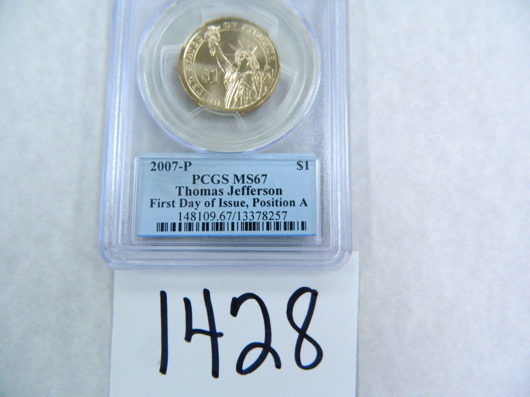 2007-P Thomas Jefferson Dollar First Day of Issue, Position A, PCGS Graded MS67