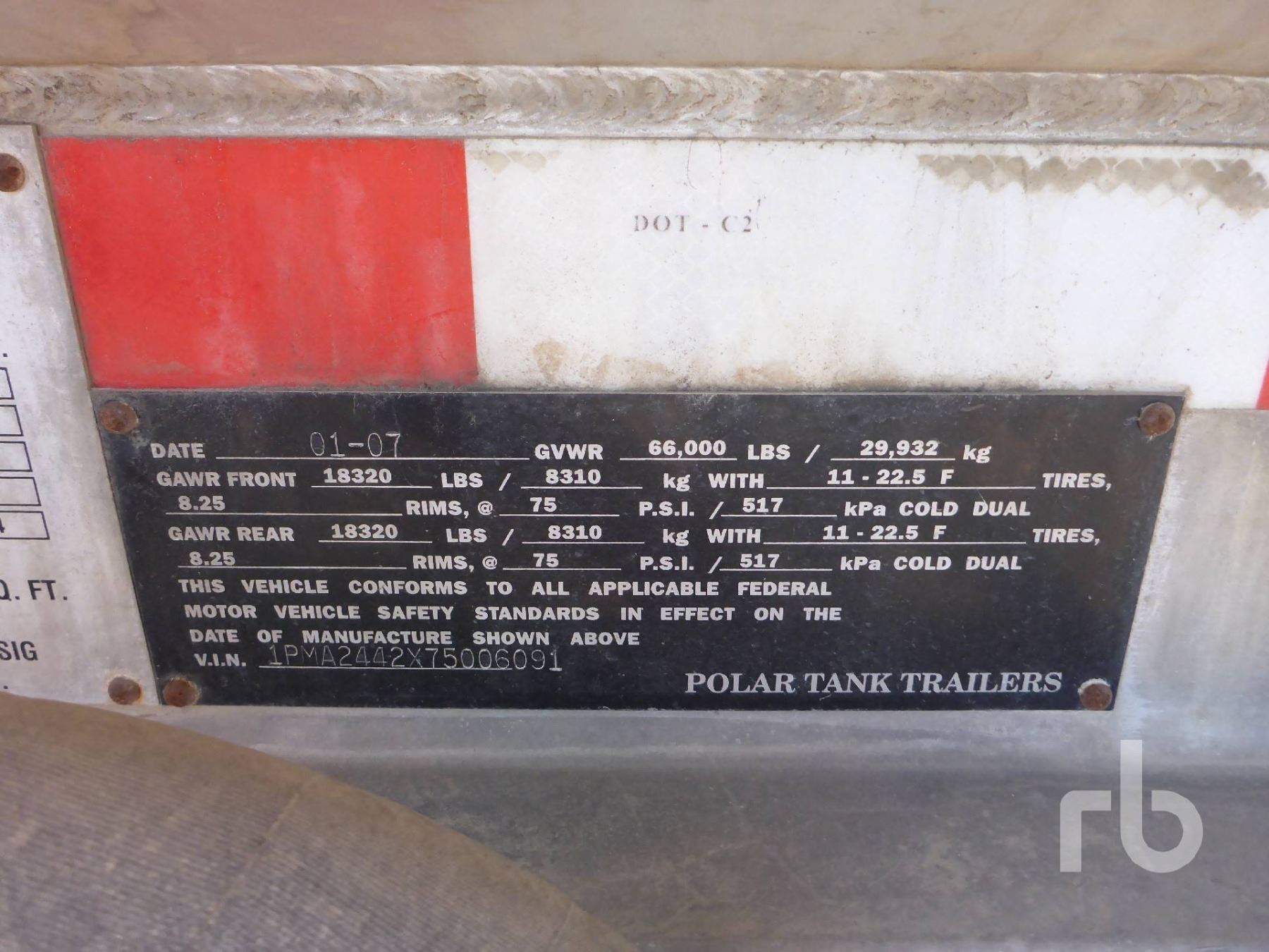 Make: POLAR Model: 9600 Gallon T/A Aluminum Year: 2007 Serial No.: 1PMA2442X7500XXXX Details: A/R susp, 3 comp't tank, Roper pump, Garnet SeeLevel Special liquid level monitoring sys, FloTech FT208 retain/overfill monitoring sys Location: Fort Worth, TX, USA