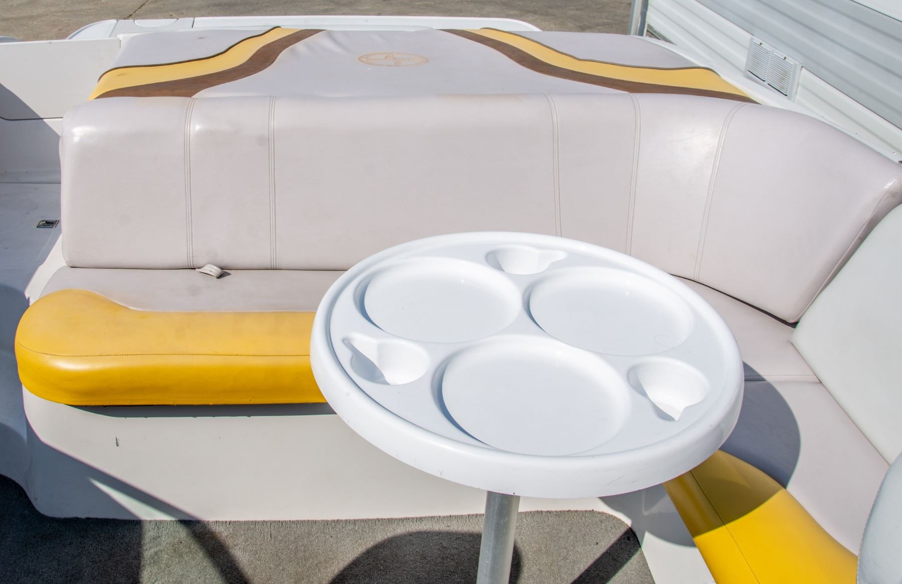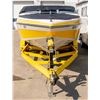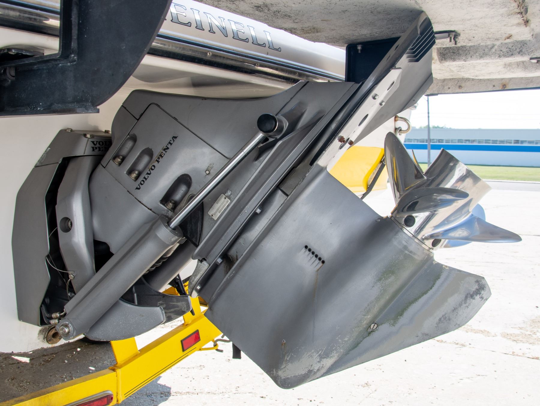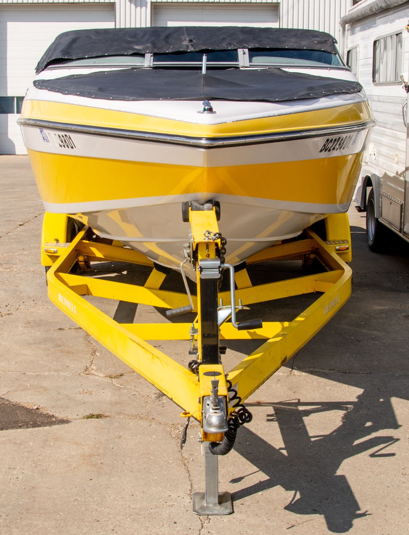KM: 300HRS Color: YELLOW AND WHITE FEATURES INCLUDE SWIM PLATFORM, DRINK TABLE, 5 L INBOARD ENGINE WITH VOLVO LEG. HAS A 42" CRACK ON THE BOTTOM, HOLE IN ONE PIPE, SOFT SPOT IN THE MIDDLE OF THE FLOOR, TIRE NEED REPLACEMENT.