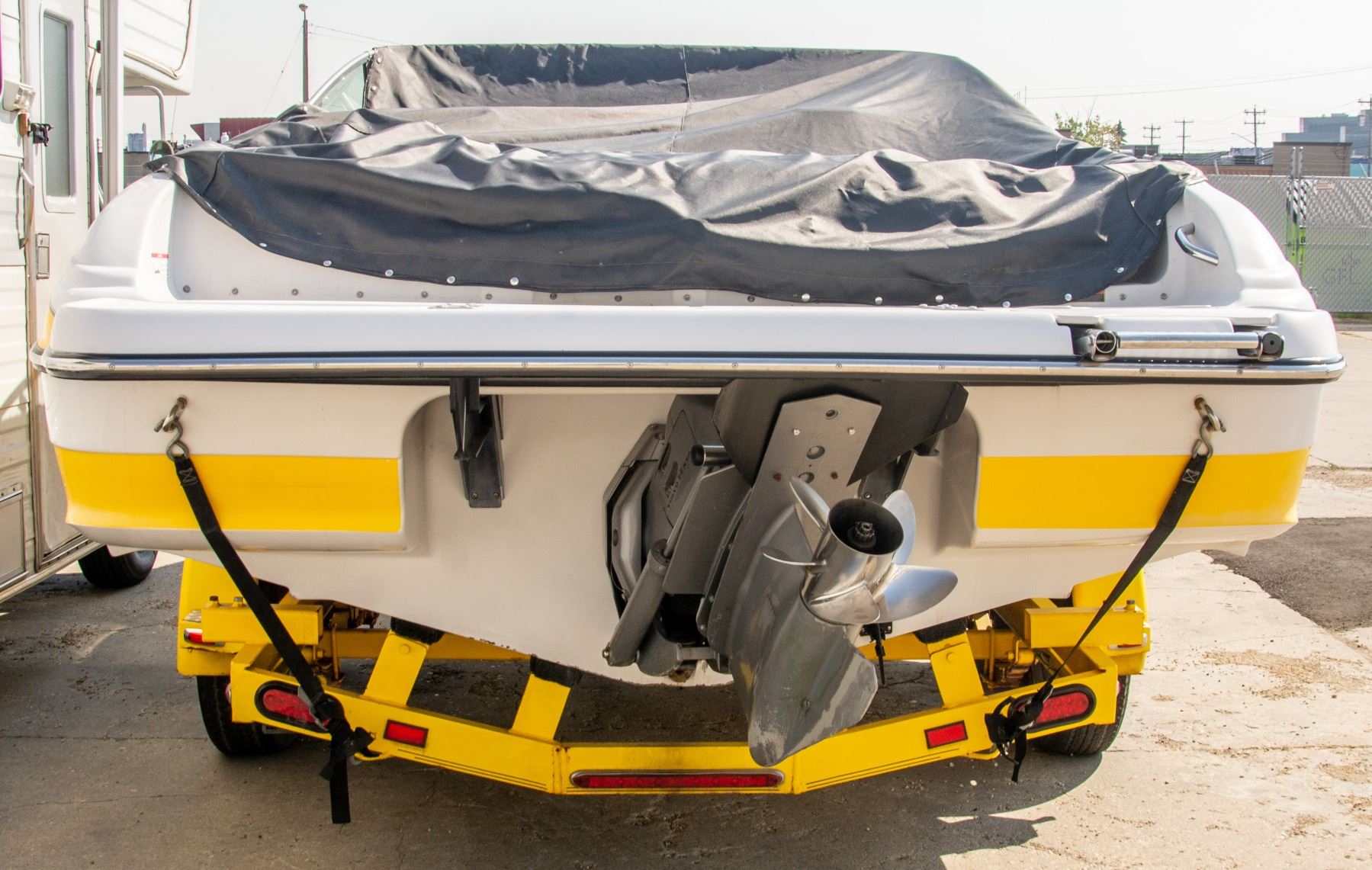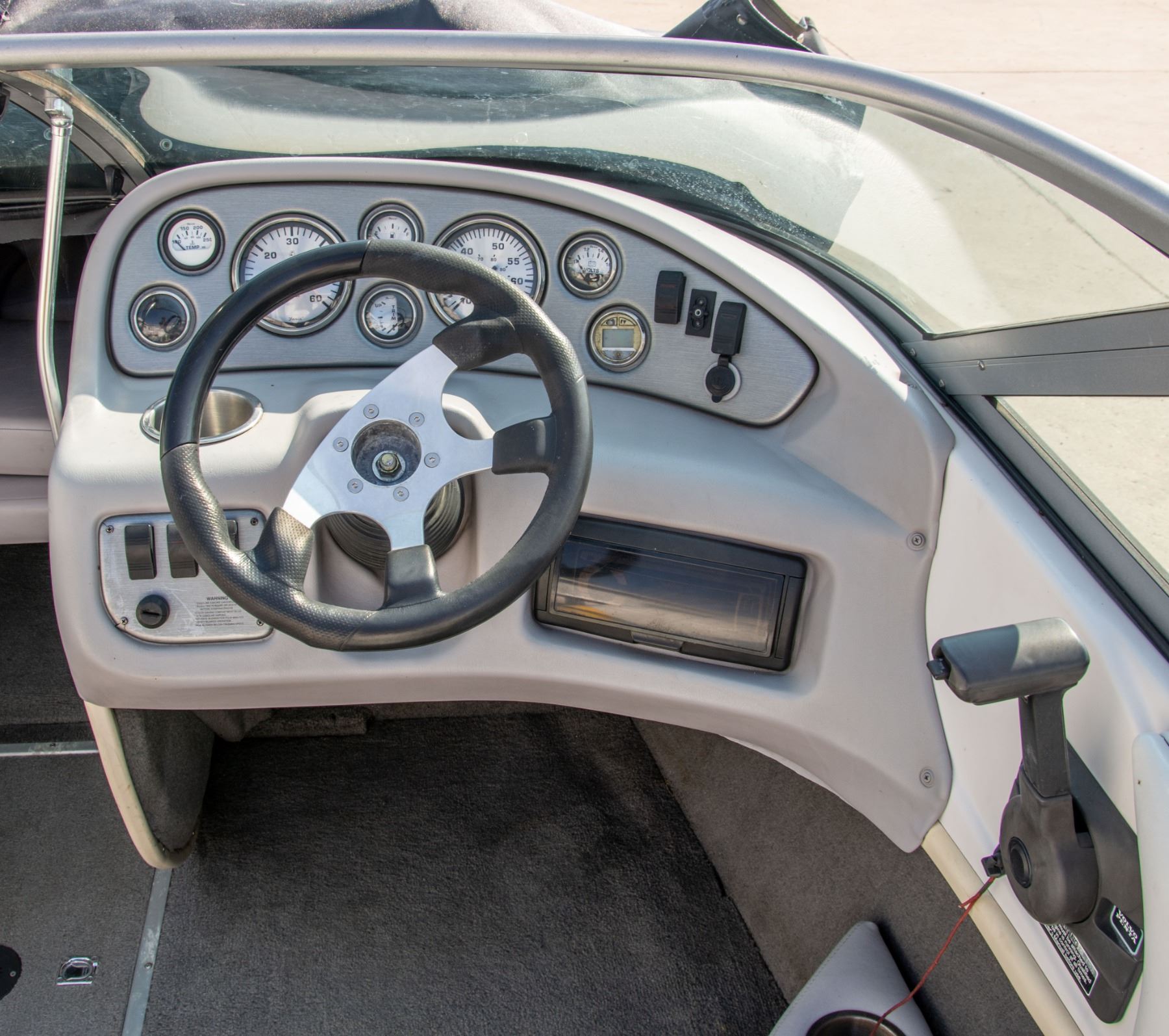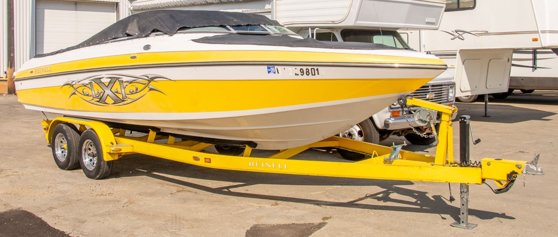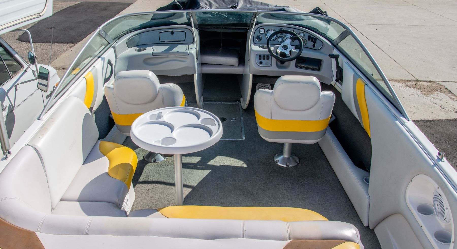 KM: 300HRS Color: YELLOW AND WHITE FEATURES INCLUDE SWIM PLATFORM, DRINK TABLE, 5 L INBOARD ENGINE WITH VOLVO LEG. HAS A 42" CRACK ON THE BOTTOM, HOLE IN ONE PIPE, SOFT SPOT IN THE MIDDLE OF THE FLOOR, TIRE NEED REPLACEMENT.