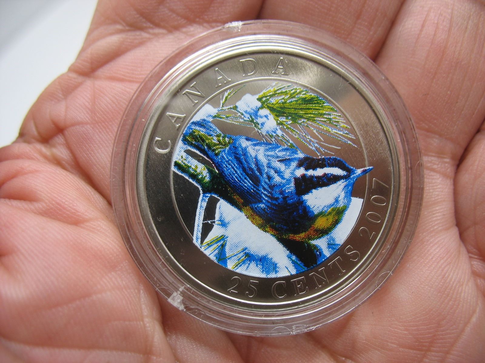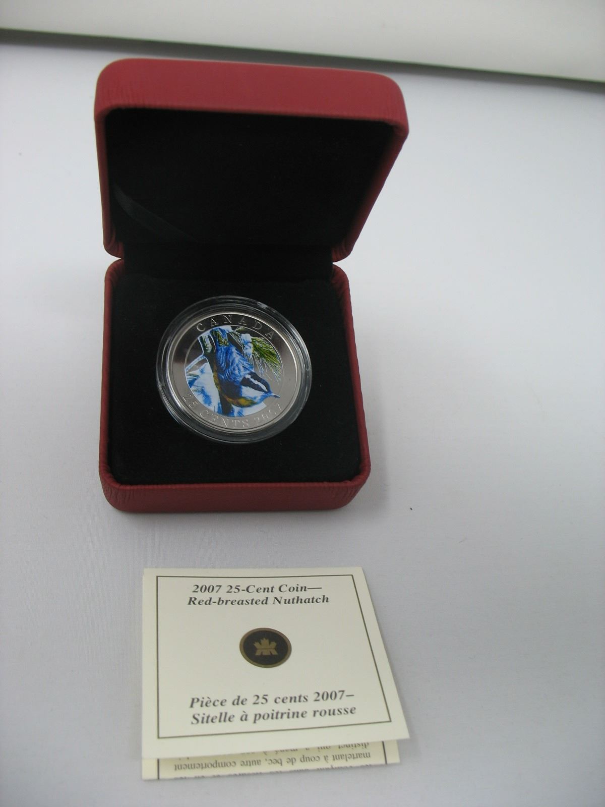 2007 ROYAL CANADIAN MINT CASED 25 CENT COIN - RED BREASTED NUTHATCH