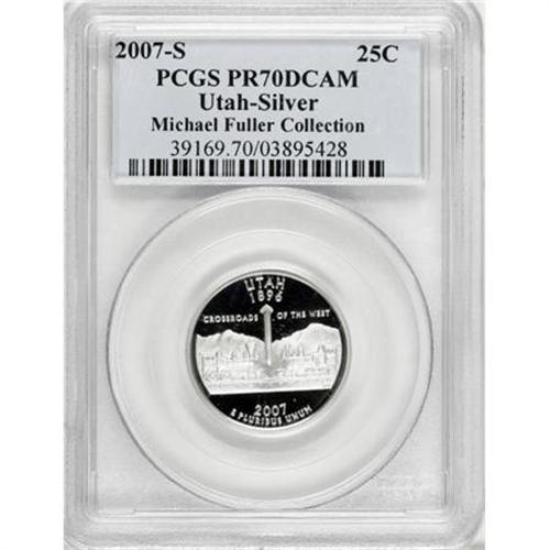<B>2007-S 25C Utah Silver PR70 Deep Cameo PCGS.</B></I> Michael Fuller Collection. PCGS Population (130/0). NGC Census: (0/0). (#39169)<BR><BR><b>Shipping:</b> Coins & Currency (<a target="_blank" href="http://www.heritageauctions.com/common/shipping.php">view shipping information</a>)