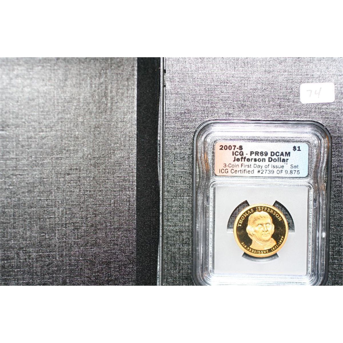 2007-S Jefferson Dollar ICG Graded PR69 DCAM 3-Coin First Day of Issue