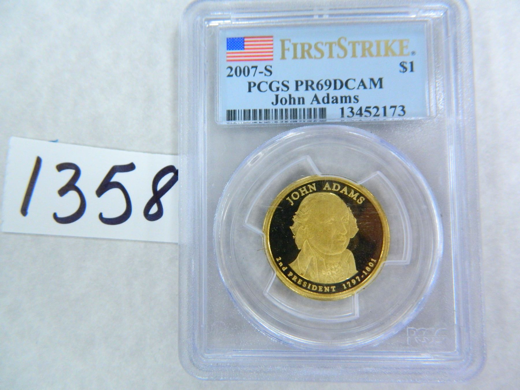 2007-S John Adams Dollar, FIRST STRIKE, PCGS Graded PR69 DC