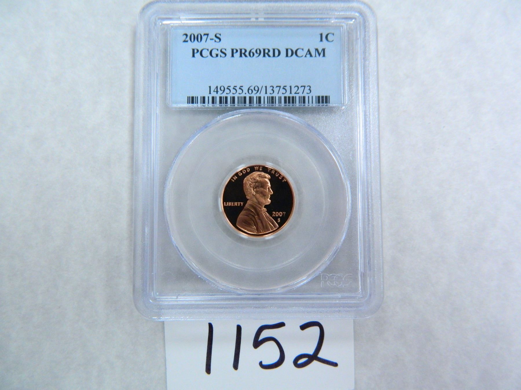 2007-S One Cent PCGS graded PR69 RD DC