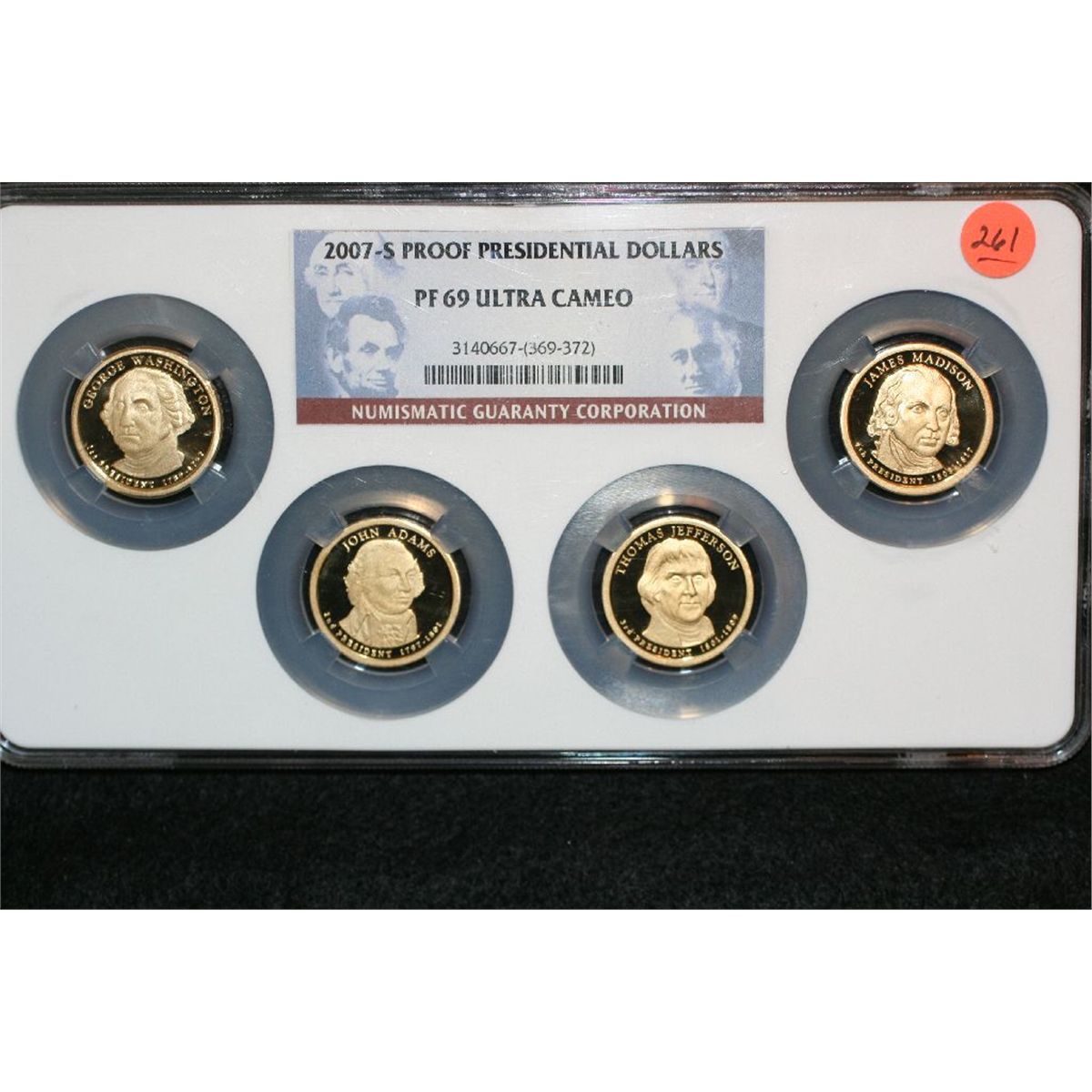 2007-S Proof Presidential $1, Washington, Adams, Jefferson & Madison, NGC graded, PF69 Ultra Cameo