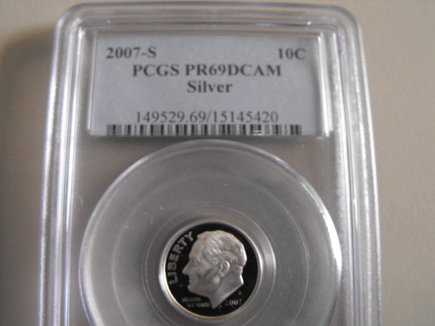 2007 S SILVER DIME PCGS PROOF 69 DCAM