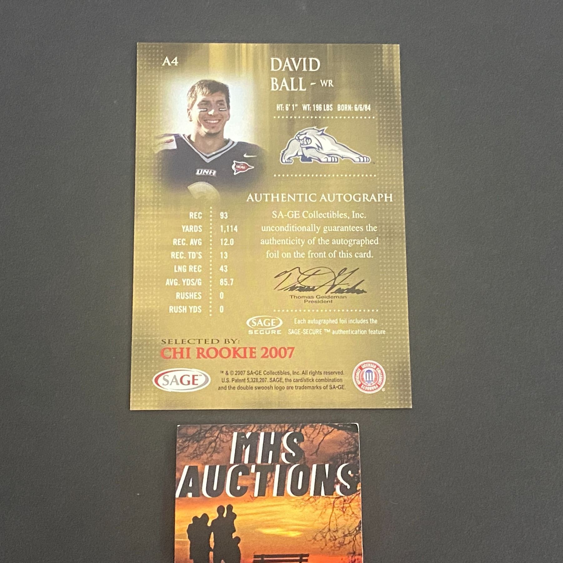 2007 SAGE COLLECTIBLES FOOTBALL AUTOGRAPH DAVID BALL AUTOGRAPH CARD