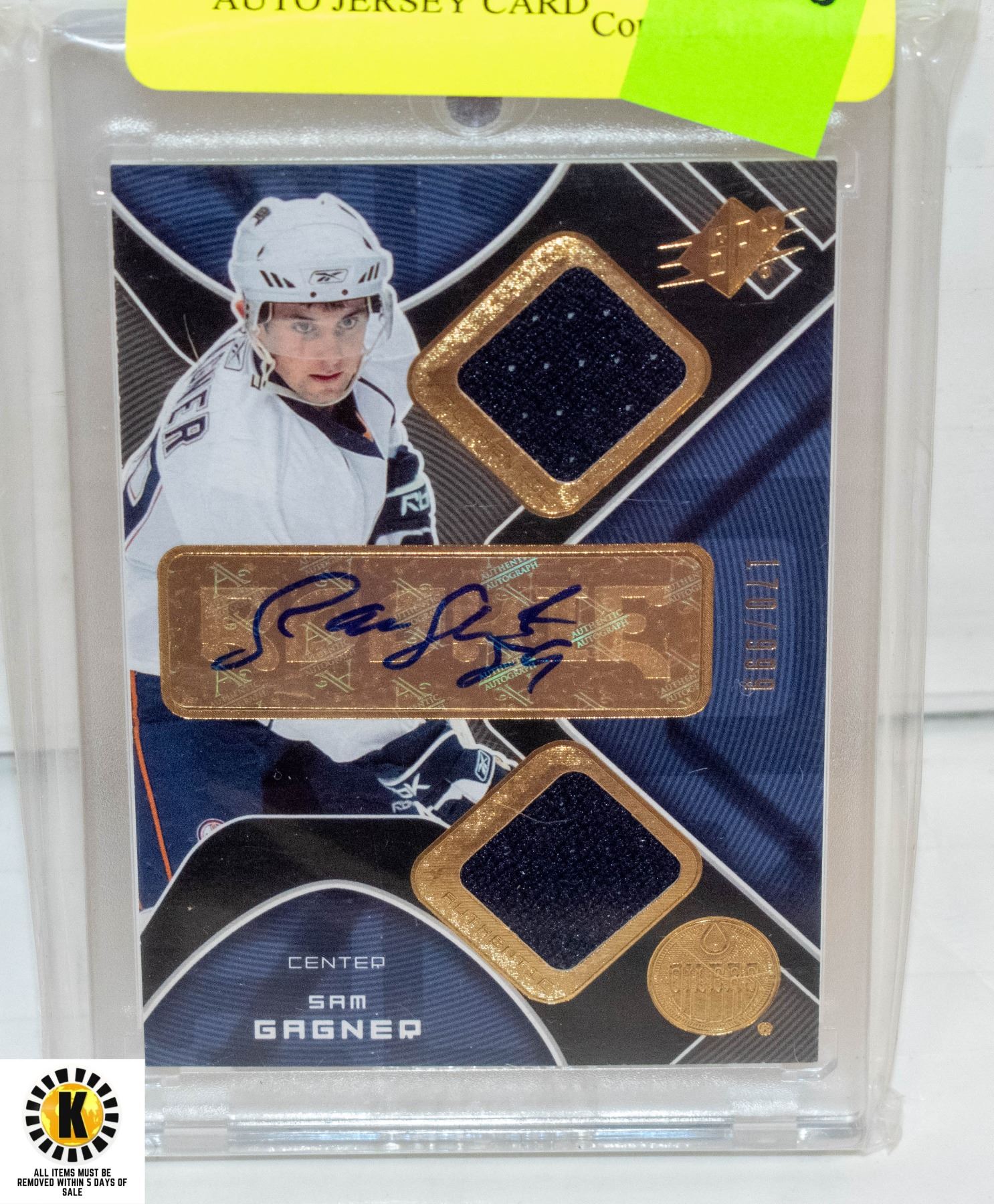 2007 SAM GAGNER NUMBERED AUTO JERSEY CARD