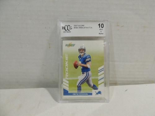 2007 SCORE #359 GRADED FOOTBALL CARD DREW STANTON. GRADED BCCG MINT 10. AS SHOWN. VIEW PICTURE FOR DETAIL.