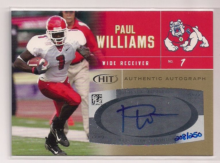 2007 Sage Hit Paul Williams Autographed Rookie Card. This Rookie Card is signed in Blue Sharpee and is Near Mint.