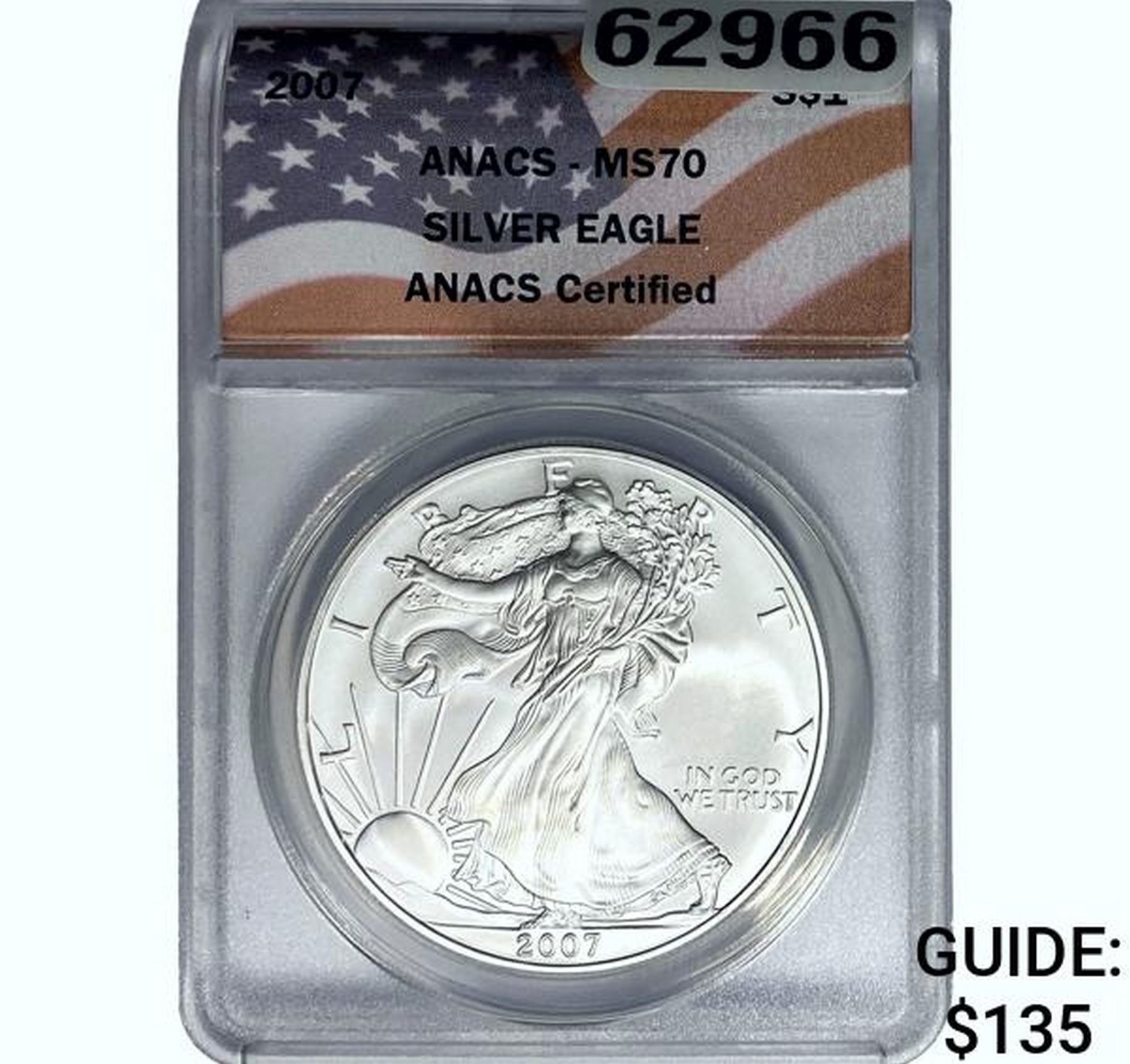 e. Coins sold referencing a third-party grading service are sold “AS IS” without any express or implied warranty, except for a guarantee by GSA that they are genuine. Removal or alteration of the holder, voids all of Bidder’s claims concerning that Product. Certain warranties may be available from the grading services and Bidders are referred to them for further details: Numismatic Guaranty Corporation (NGC), PO Box 4776, Sarasota, FL 34230, www.ngccoin.com/services/writtenguarantee.asp; Professional Coin Grading Services (PCGS), PO Box 9458, Newport Beach, CA 92658, www.pcgs.com/guarantee.html; ANACS, 6555 S. Kenton St., Ste. 303, Englewood, CO 80111; and Independent Coin Grading Co. (ICG), 7901 East Bellview, Ave., Suite 50, Englewood, CO 80111.