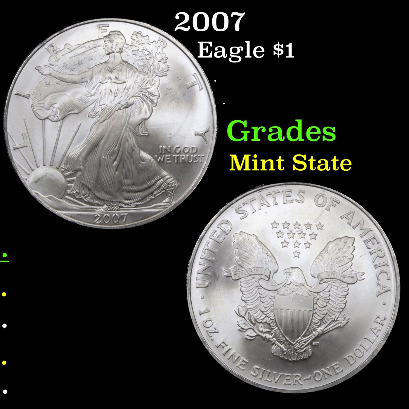 2007 Silver Eagle Dollar $1 Grades Mint State.