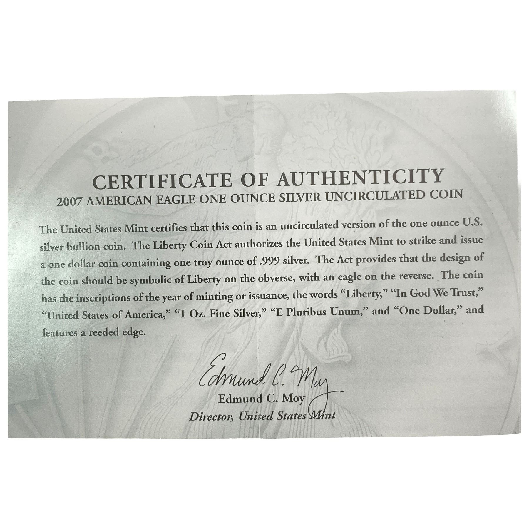 2007 Silver Eagle UNC Toned