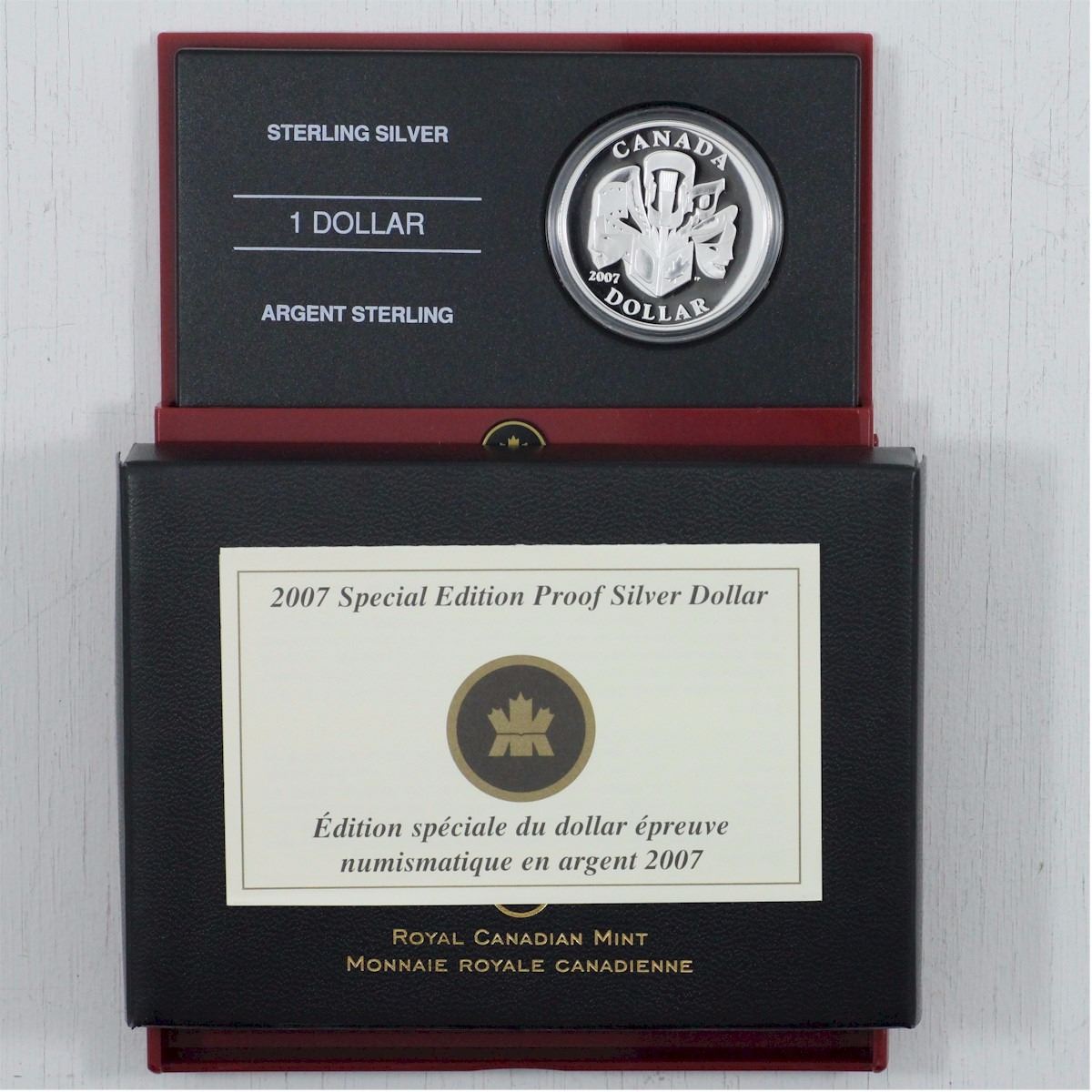 2007 Special Edition celebration of the Arts Proof Silver Dollar Issued by the Royal Canadian Mint (TAX Exempt) - tattered outer cardboard sleeve. Buyers Premium will be added on all items as per our terms of sale. We accept Paypal, Credit Card, E-Transfer Payments, Cheque or Money Orders (there is an additional 3% fee for using Paypal or Credit Card). All invoices will be emailed immediately following the auction, please contact us if you would like to pay by credit card or receive a new revised lower total for mailing in payment or sending an e-transfer (3% discount). All Items Are Sold "AS IS", no returns