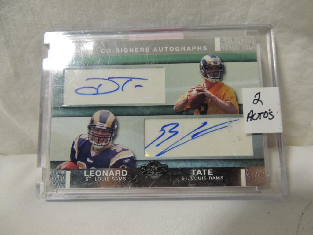 CO SIGNERS AUTOGRAPHS LEONARD ST LOUIS RAMS & TATE ST LOUIS RAMS AUTOGRAPHED FOOTBALL CARD FOOTBALL PLAYER CARDS. TRADING CARDS. COLLECTIBLE. FOOTBALL MEMORABILIA. GOOD CONDITION AS SHOWN. SEE PHOTO FOR MORE DETAILS.