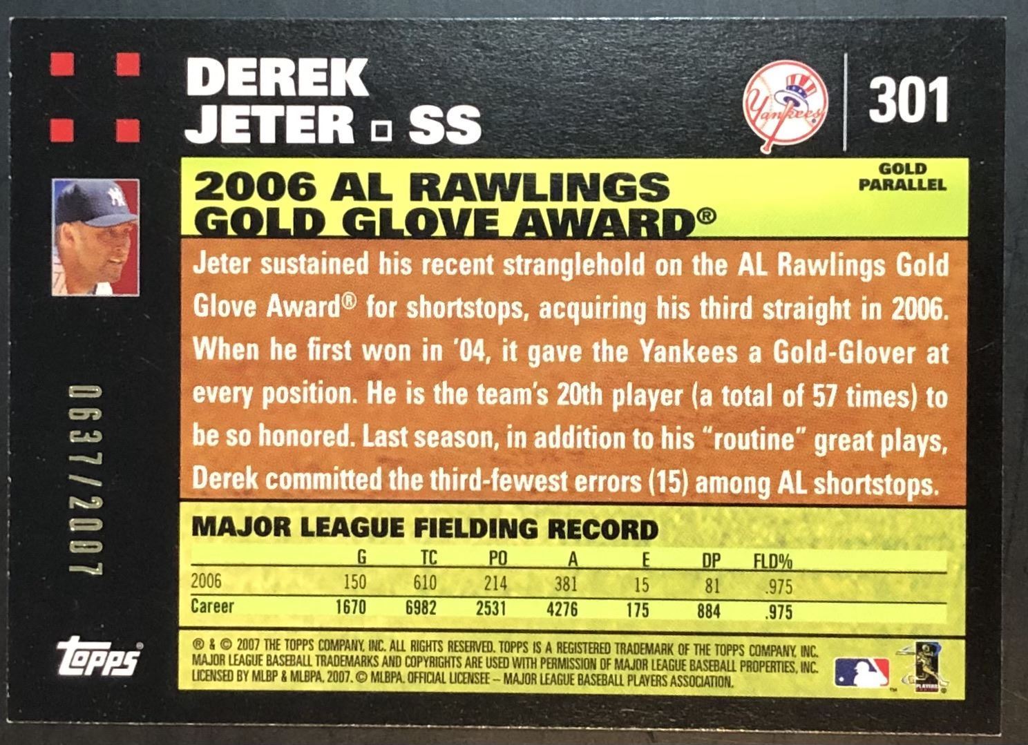 Card #301, limited, #0637/2007 MLB, baseball, hall of fame