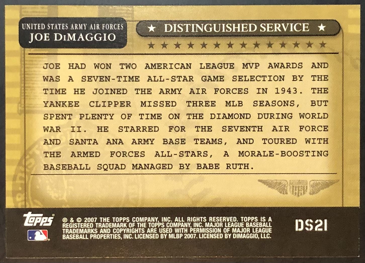 Card #DS21 MLB, baseball, hall of fame