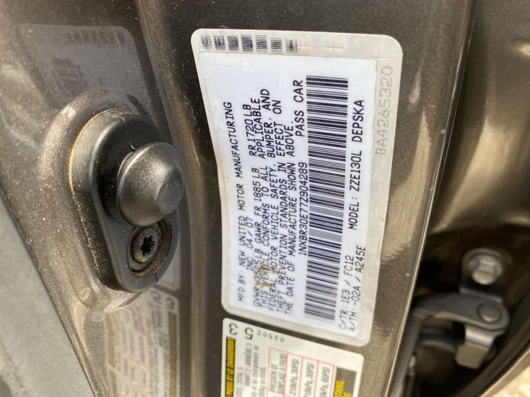VIN:1NXBR30E77Z904289