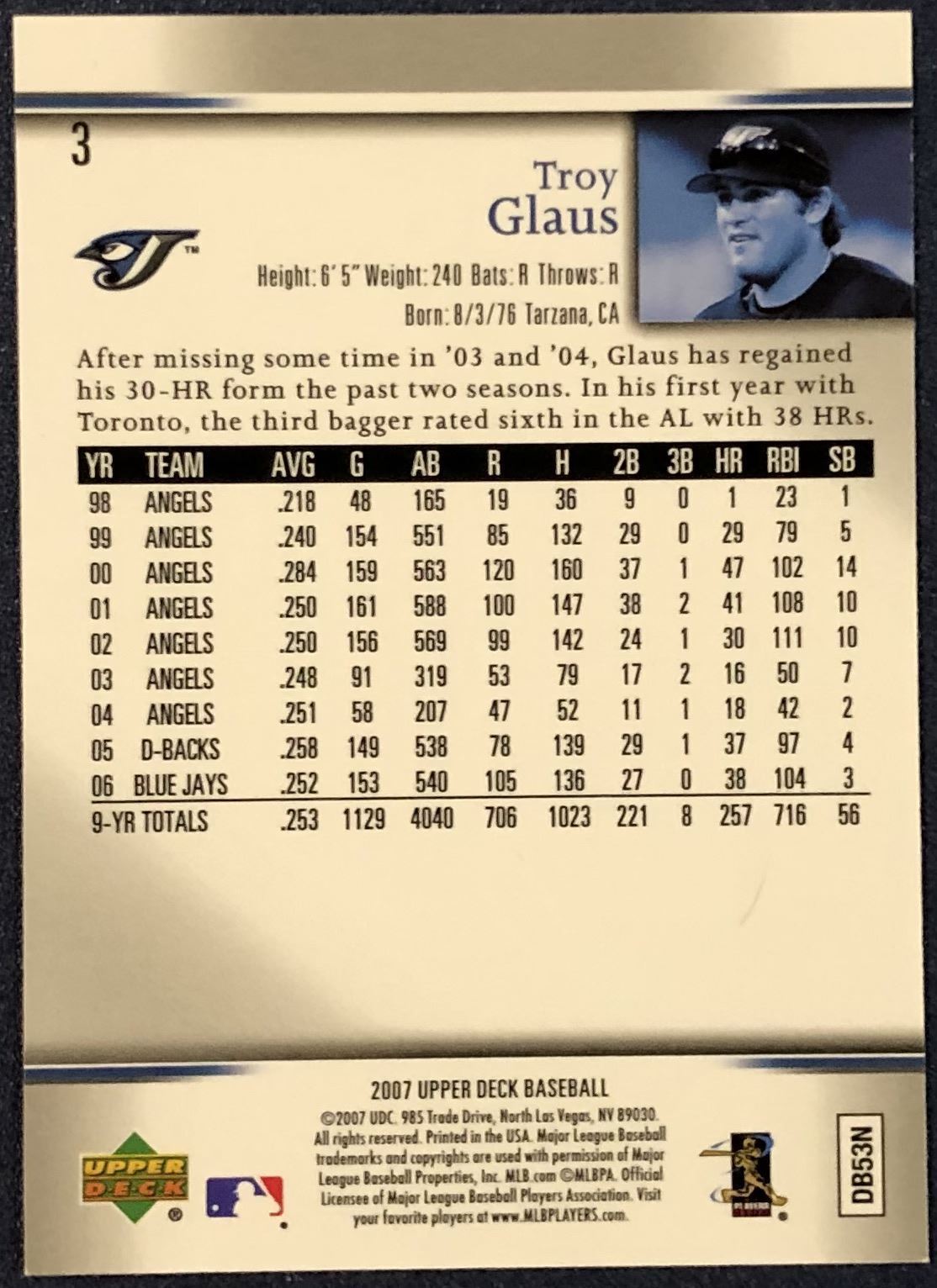 Card #3 MLB, baseball, UD