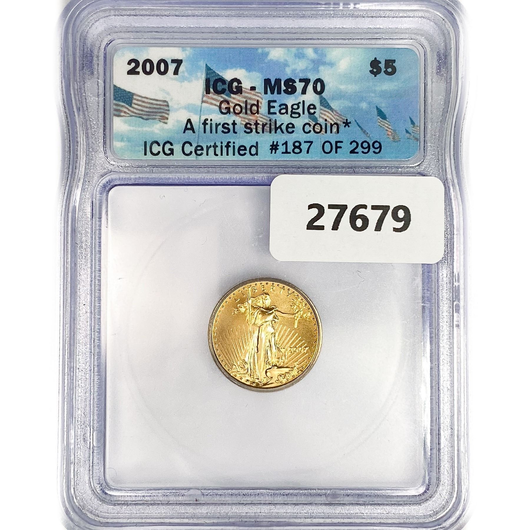 2007 US 1/10oz Gold $5 Eagle ICG MS70 1st Strike