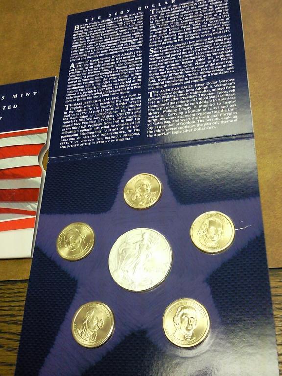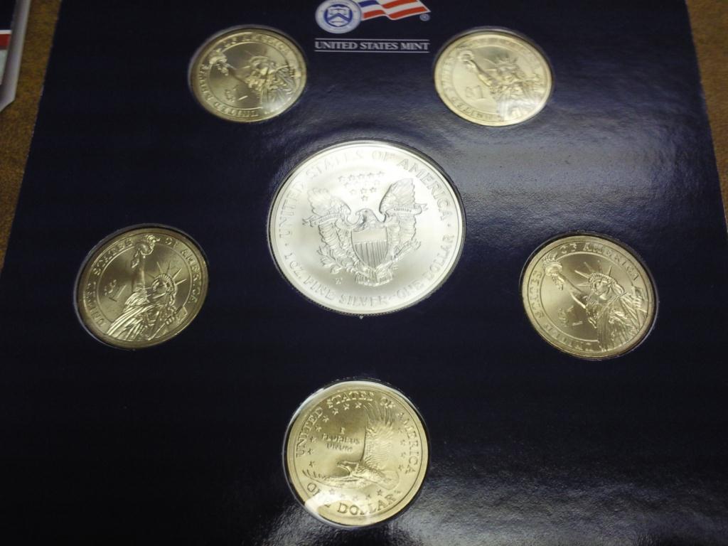CONTAINS: ASE, 4 PRESIDENTIAL DOLLARS AND SACAGAWEA DOLLAR