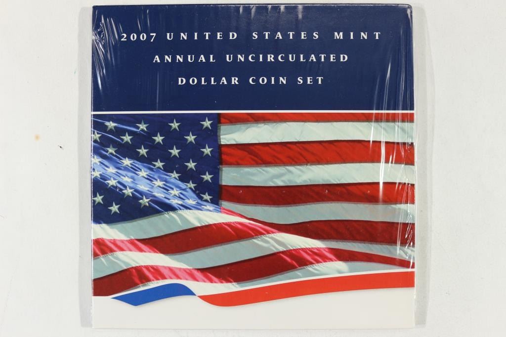 CONTAINS: AMERICAN SILVER EAGLE, SACAGAWEA GOLDEN DOLLAR AND ALL FOUR PRESIDENTIAL DOLLARS, SEALED ORIGINAL US MINT PACKAGING