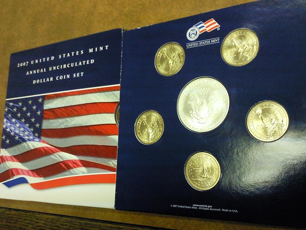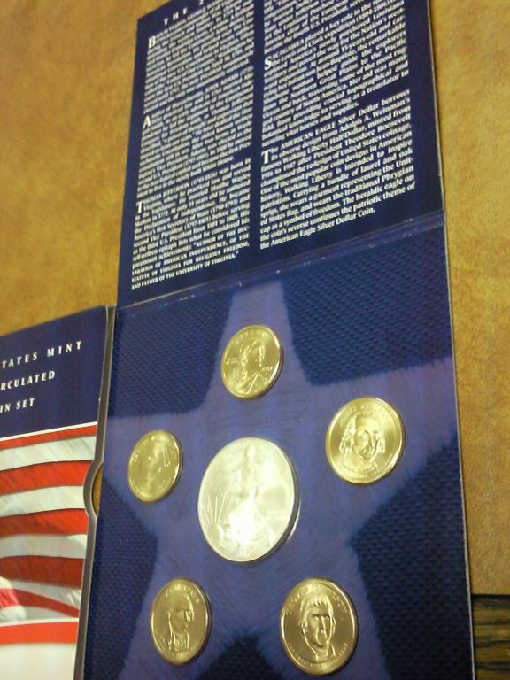 CONTAINS: AMERICAN SILVER EAGLE, SACAGAWEA DOLLAR AND 4 PRESIDENTIAL DOLLARS, ORIGINAL US MINT PACKAGING