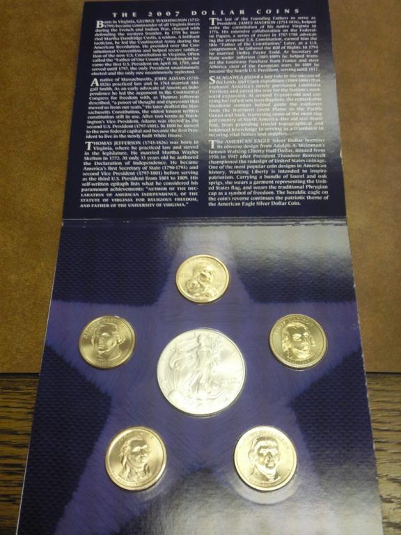 Original Mint Packaging, Contains: American Silver Eagle, A Sacagawe Dollar And 4 Presidential Dollars