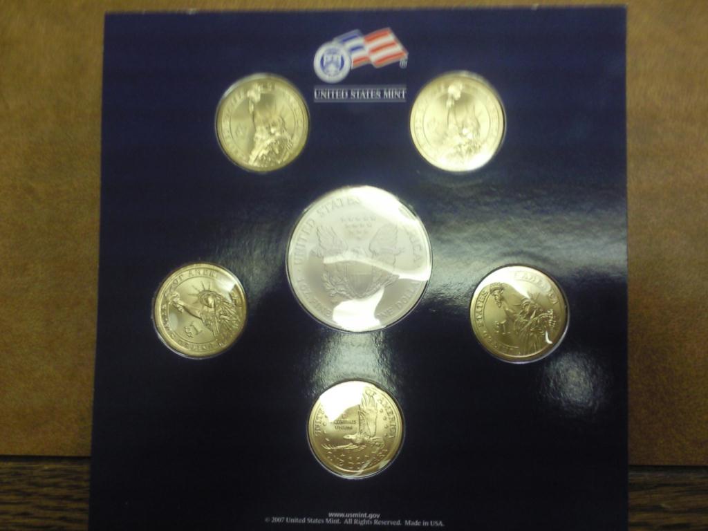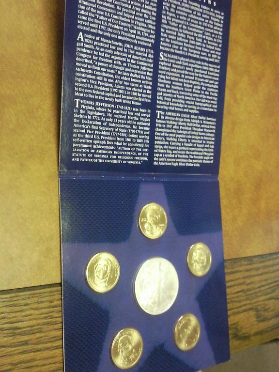 Contains: ASE, 4- Presidential Dollars And 1 Sacagawea Dollar