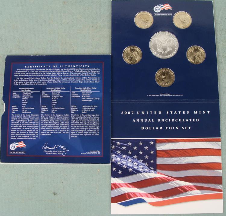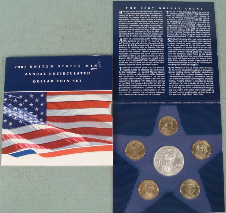 2007 US Mint American Eagle + Presidential Dollar Set, with Sacagawea * Condition: Mint Uncirculated in original folder