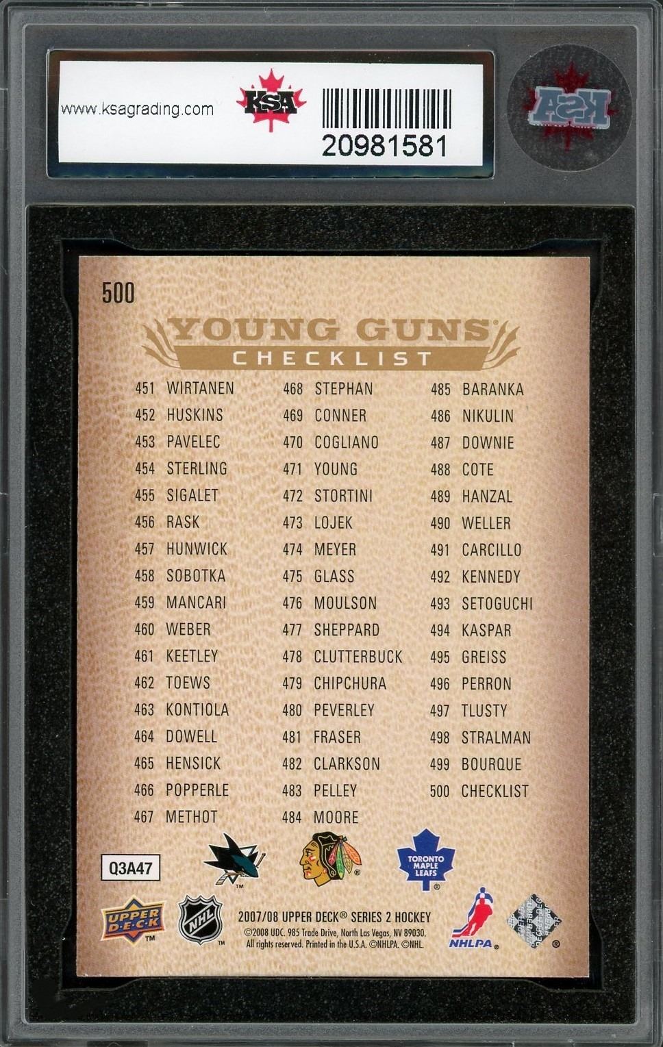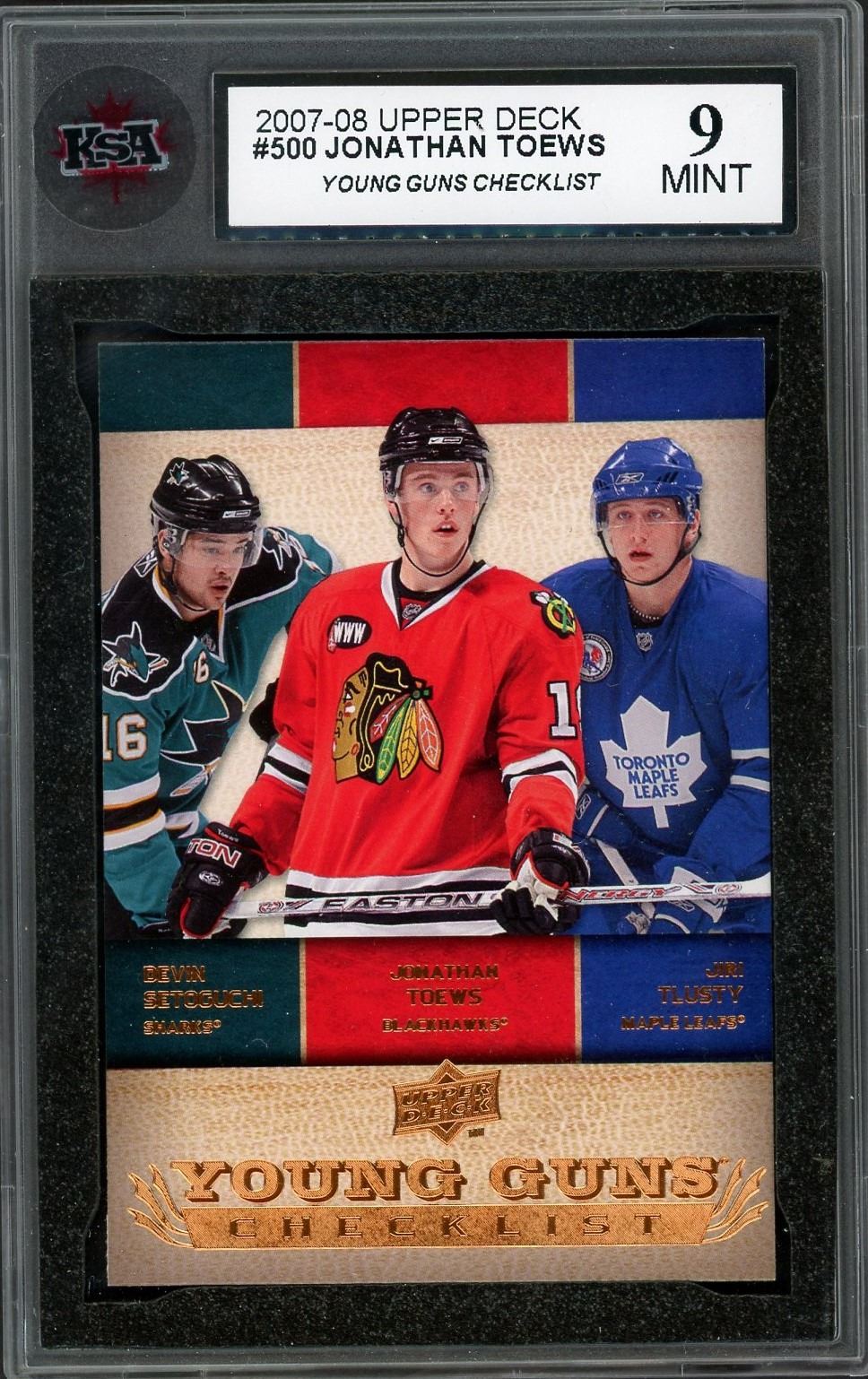 Young Guns checklist featuring one of the top players in the last 25 years Jonathan Toews of the Chicago Blackhawks. Graded a MINT 9 by KSA.