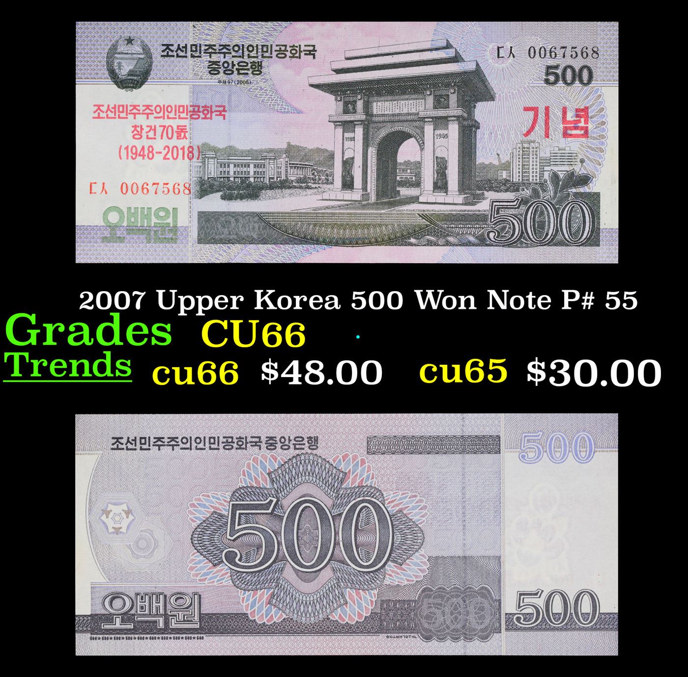 2007 Upper Korea 500 Won Note P# 55 Grades Gem+ CU.