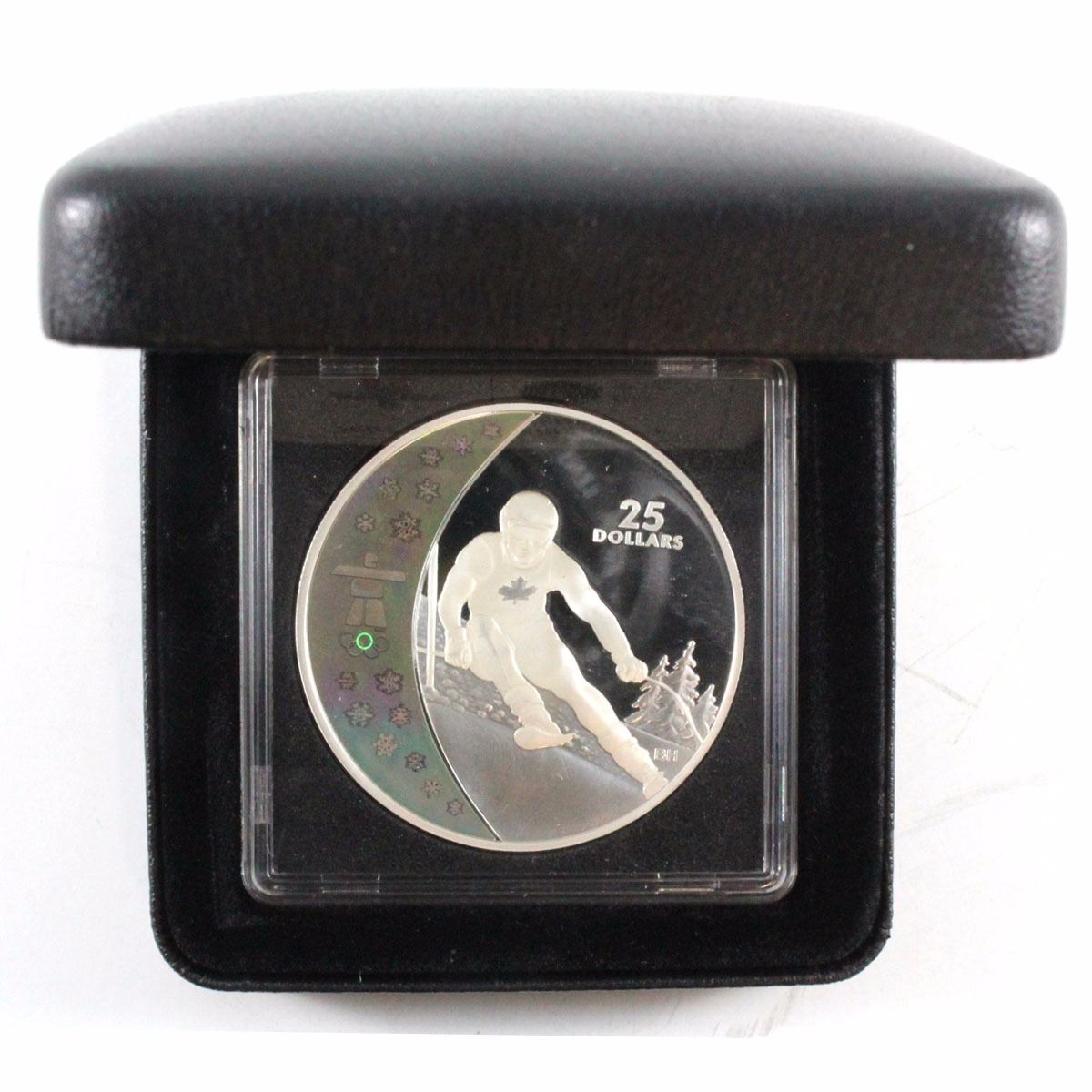 2007 Vancouver Olympic $25 Alpine Skiing Sterling Silver Hologram coin. Coin comes Encapsulated with Display Box and COA. Buyers Premium will be added on all items as per our terms of sale. We accept Paypal, Credit Card, E-Transfer Payments, Cheque or Money Orders (there is an additional 3% fee for using Paypal or Credit Card). All invoices will be emailed immediately following the auction, please contact us if you would like to pay by credit card or receive a new revised lower total for mailing in payment or sending an e-transfer (3% discount). All Items Are Sold "AS IS", no returns