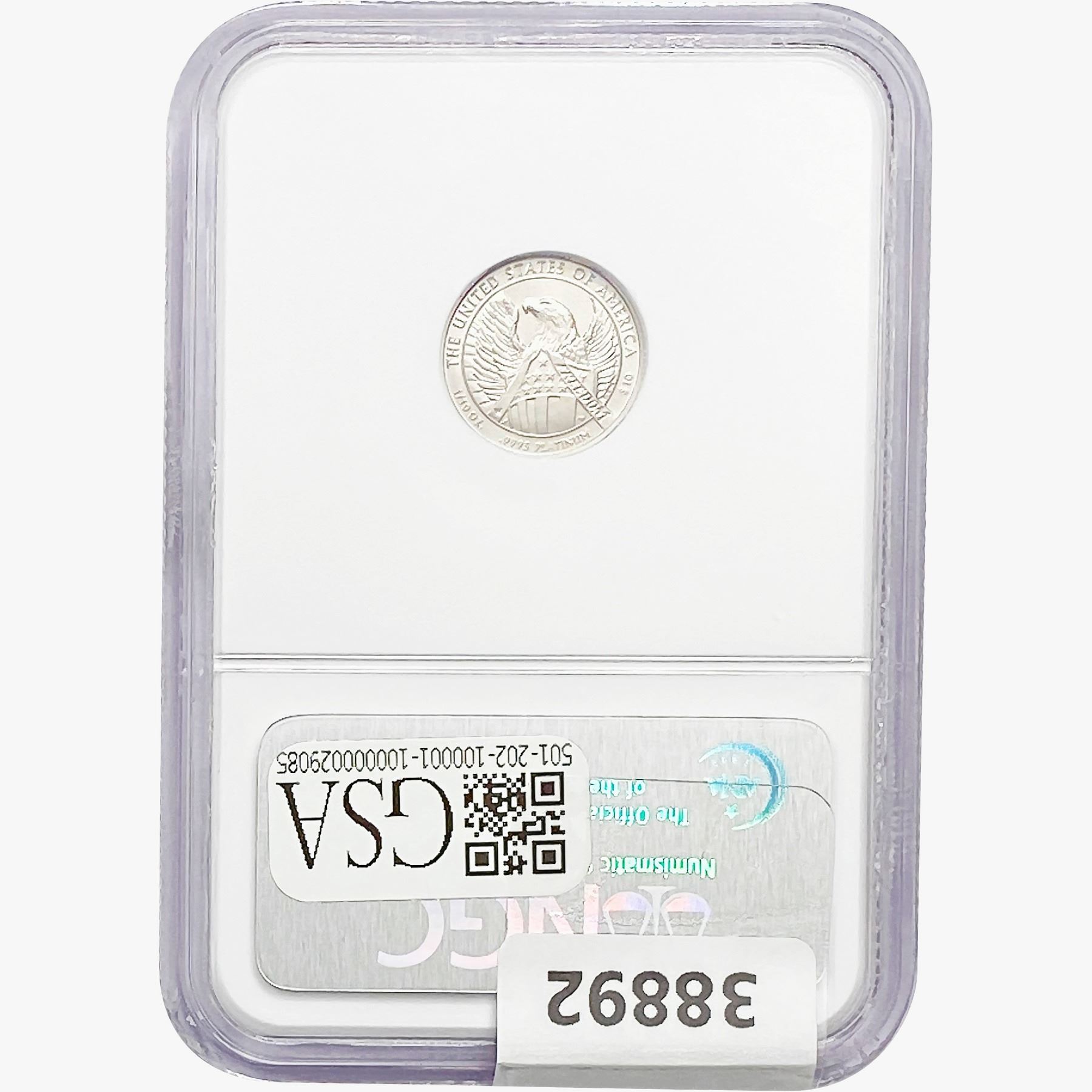COINS AND CURRENCY LISTED IN GSA’S CATALOG AS GRADED AND ENCAPSULATED BY PCGS, NGC, ANACS, ICG, PCGS CURRENCY, PMG, PCGS BANKNOTE GRADING, CMC OR ANY OTHER THIRD-PARTY GRADING SERVICE ARE LIKEWISE SOLD “AS-IS” EXCEPT AS EXPRESSLY SET FORTH HEREIN. ALL THIRD-PARTY GRADING SERVICE GUARANTEES, INCLUDING AUTHENTICITY, ARE THE SOLE RESPONSIBILITY OF THE THIRD-PARTY GRADING SERVICE AND NOT WARRANTIES OR GUARANTEES OF GSA. BIDDERS SHOULD CONTACT THESE THIRD-PARTY GRADING SERVICES DIRECTLY WITH RESPECT TO ANY CLAIMS OR QUESTIONS THEY MAY HAVE CONCERNING THEIR GUARANTEES AND WARRANTIES. BIDDERS ACKNOWLEDGE AND AGREE THAT AUCTIONEER IS NOT BOUND BY OR LIABLE FOR ANY OPINION OR CERTIFICATION BY ANY THIRD-PARTY GRADING SERVICE. REMOVAL OF A PRODUCT FROM ITS PROTECTIVE CASING OR HOLDER OR ALTERATION OF ANY COIN HOLDER WAIVES ALL RIGHTS CONCERNING THE PRODUCT CONTAINED THEREIN.