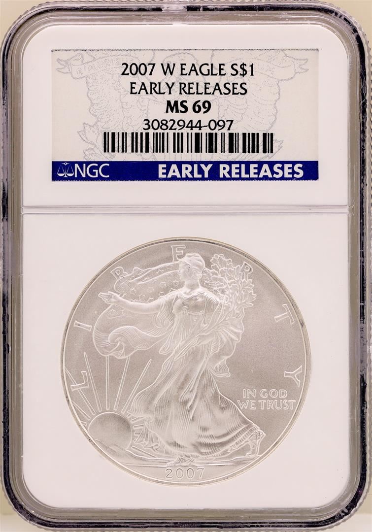 One 2007-W $1 American Silver Eagle Coin NGC MS69 Early Releases. NGC Certified.