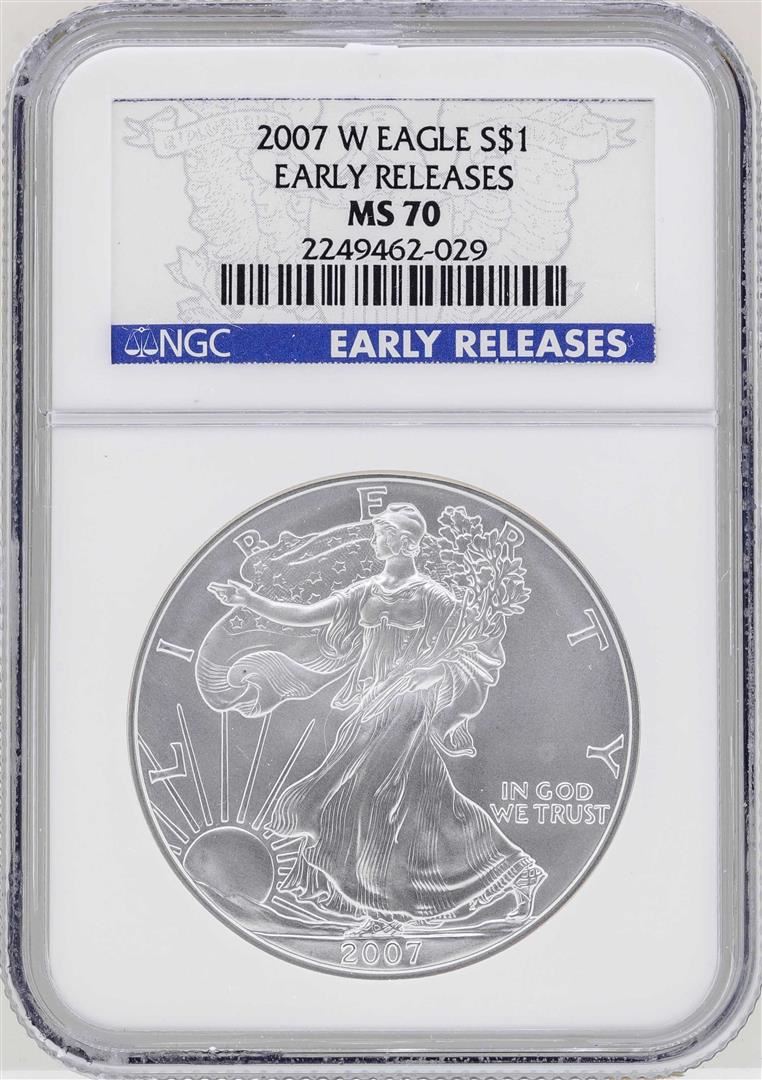 One 2007-W $1 American Silver Eagle Coin NGC MS70 Early Releases. NGC Certified.