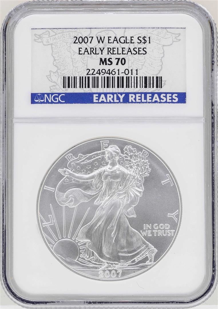 One 2007-W $1 American Silver Eagle Coin NGC MS70 Early Releases. NGC Certified.